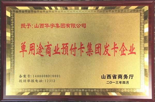 428日,山西省商務(wù)廳召開了“全省單用途商業(yè)預(yù)付卡管理工作座談會(huì)”,會(huì)上對(duì)集團(tuán)和品牌發(fā)卡企業(yè)進(jìn)行了授牌,山西華宇集團(tuán)有限公司獲得“單用途商業(yè)預(yù)付卡集團(tuán)發(fā)卡企業(yè)”資格。截止目前,全省共有集團(tuán)發(fā)卡企業(yè)12家,品牌發(fā)卡企業(yè)8家。